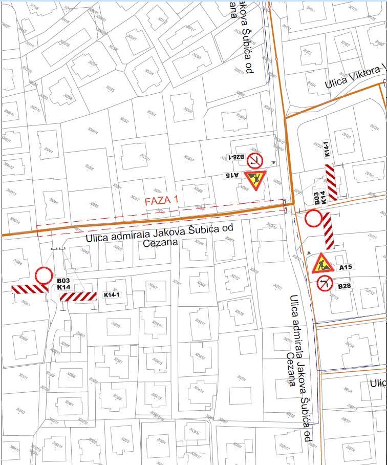 Privremena regulacija prometa - Ulice admirala Jakova Šubića od Cezana