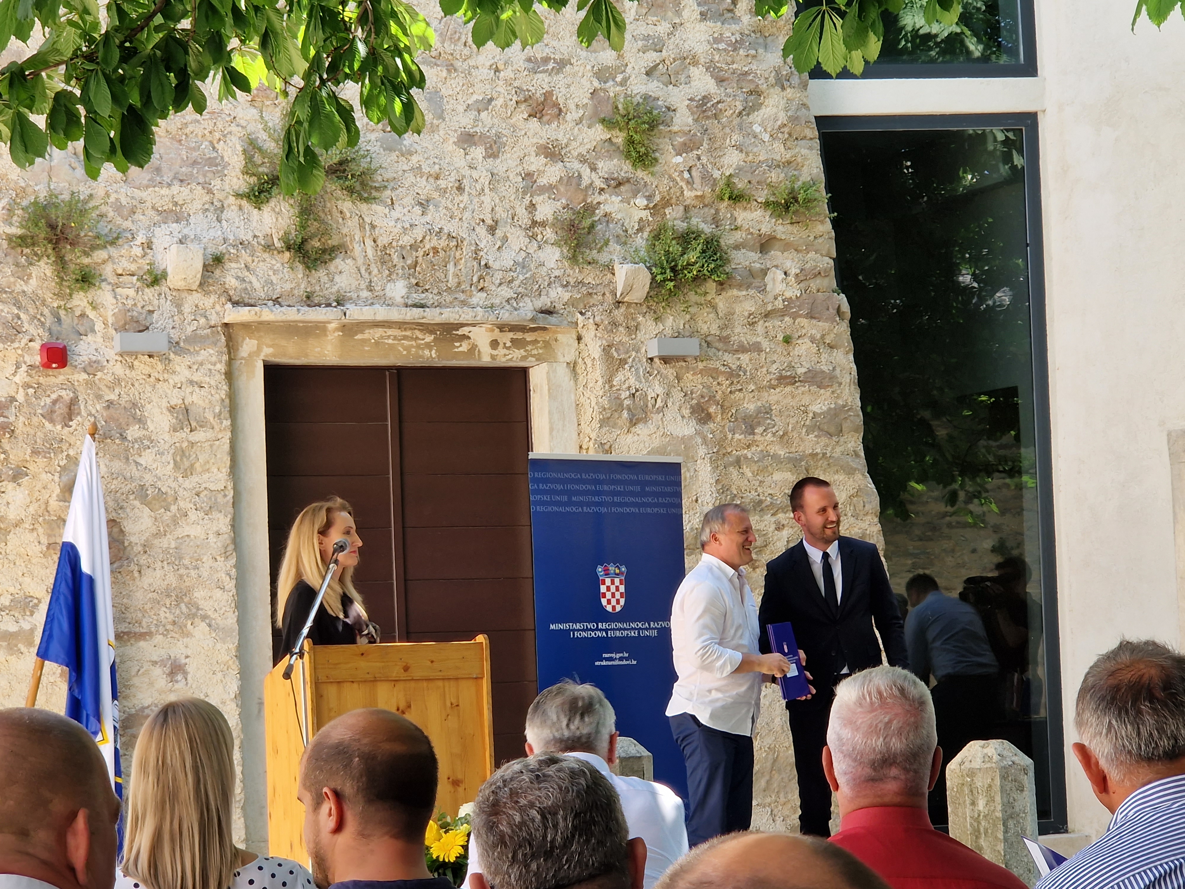 Danas je u Benkovcu ministar Šime Erlić uručio gradonačelniku Branku Dukiću nove ugovore odobrene u sklopu Javnog poziva sufinanciranja provedbe EU projekata na regionalnoj i lokalnoj razini u 2023. godini.