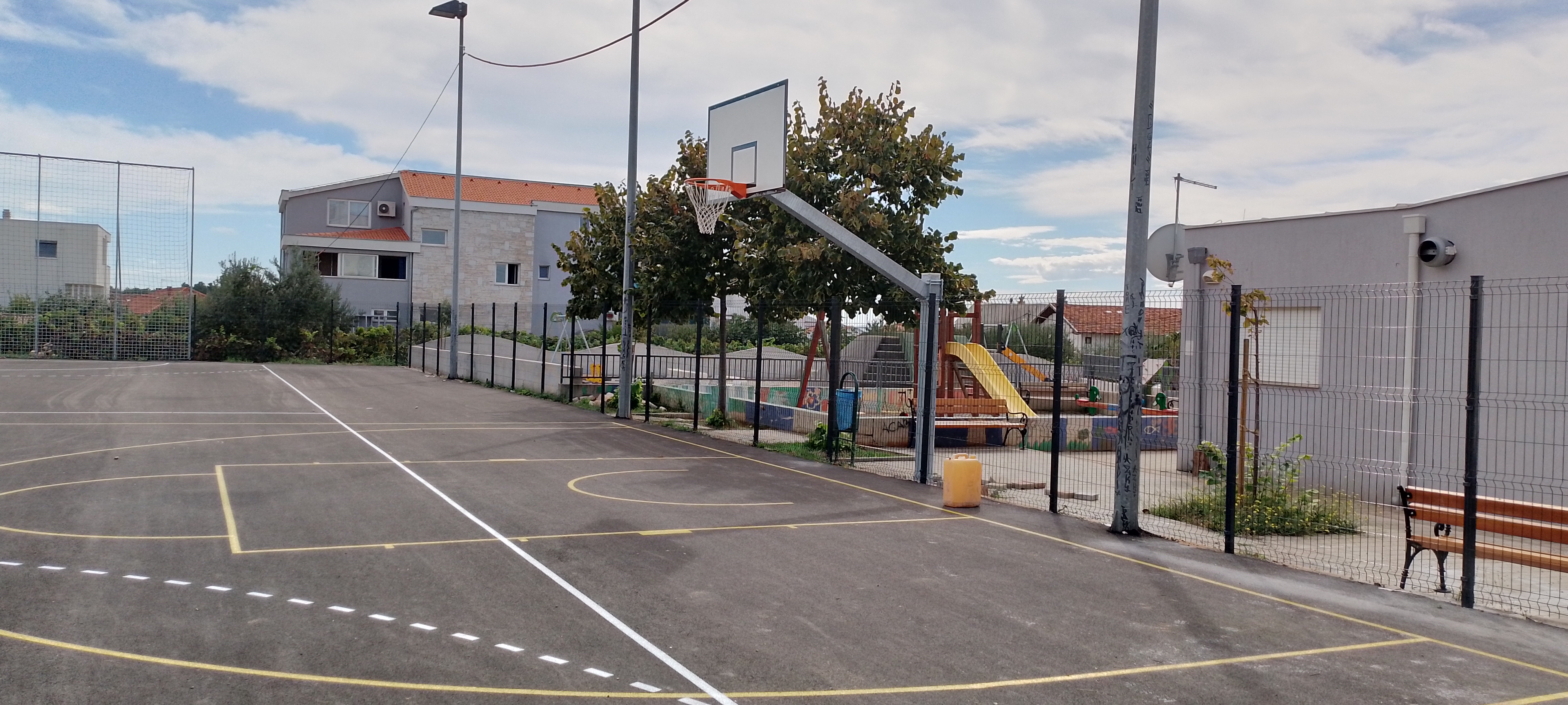 Postavljen je novi sloj asfalta, zamijenjena je kompletna ograda igrališta, postavljene su nove košarkaške konstrukcije, popravljena su rasvjetna tijela te su ocrtane nove linije igrališta.