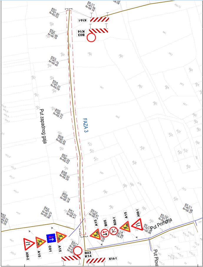Privremena regulacija prometa - ulica Put Zapadnog gaja Kožino