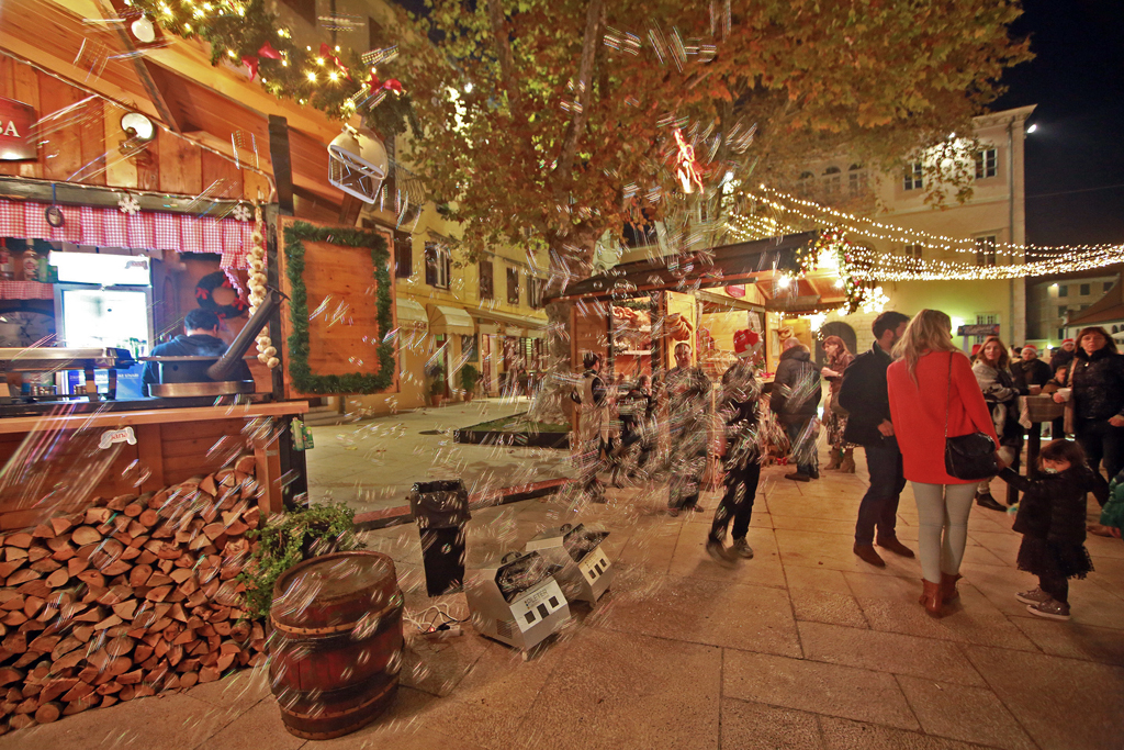Adventske kućice maštovitih naziva u svečanom okruženju nude mirisne i ukusne specijalitete, jelo i piće: vino, kuhano vino, pivo, tople i hladne bezalkoholne napitke, fritule, kobasice, slastice, palačinke, ribe, jela s roštilja, prigodne suvenire i božićne ukrase.
