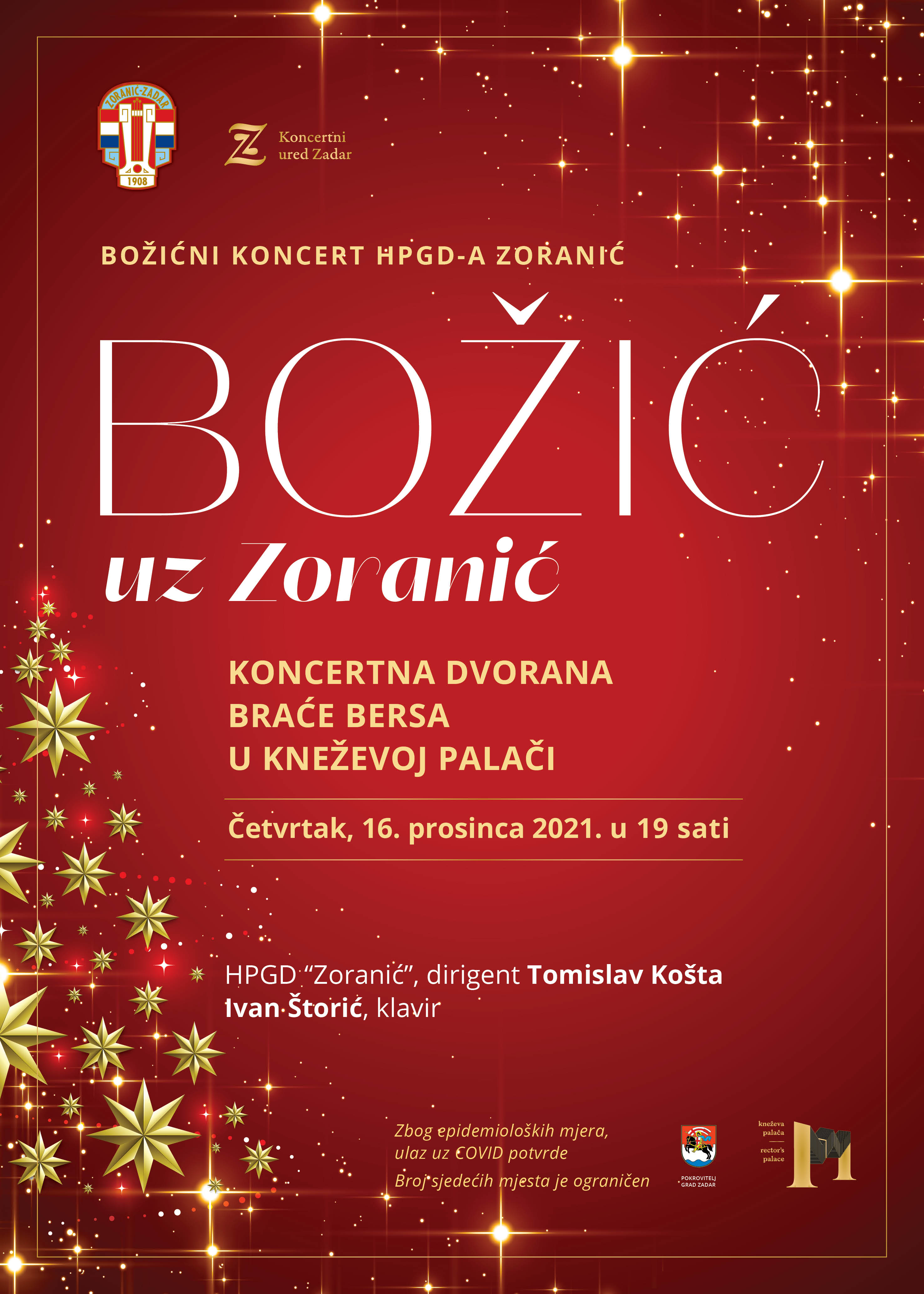 Prigodni koncert nosi naziv "Božić uz Zoranić", a održat će se u četvrtak, 16. prosinca 2021. u 19 sati u Koncertnoj dvorani braće Bersa u Kneževoj palači.