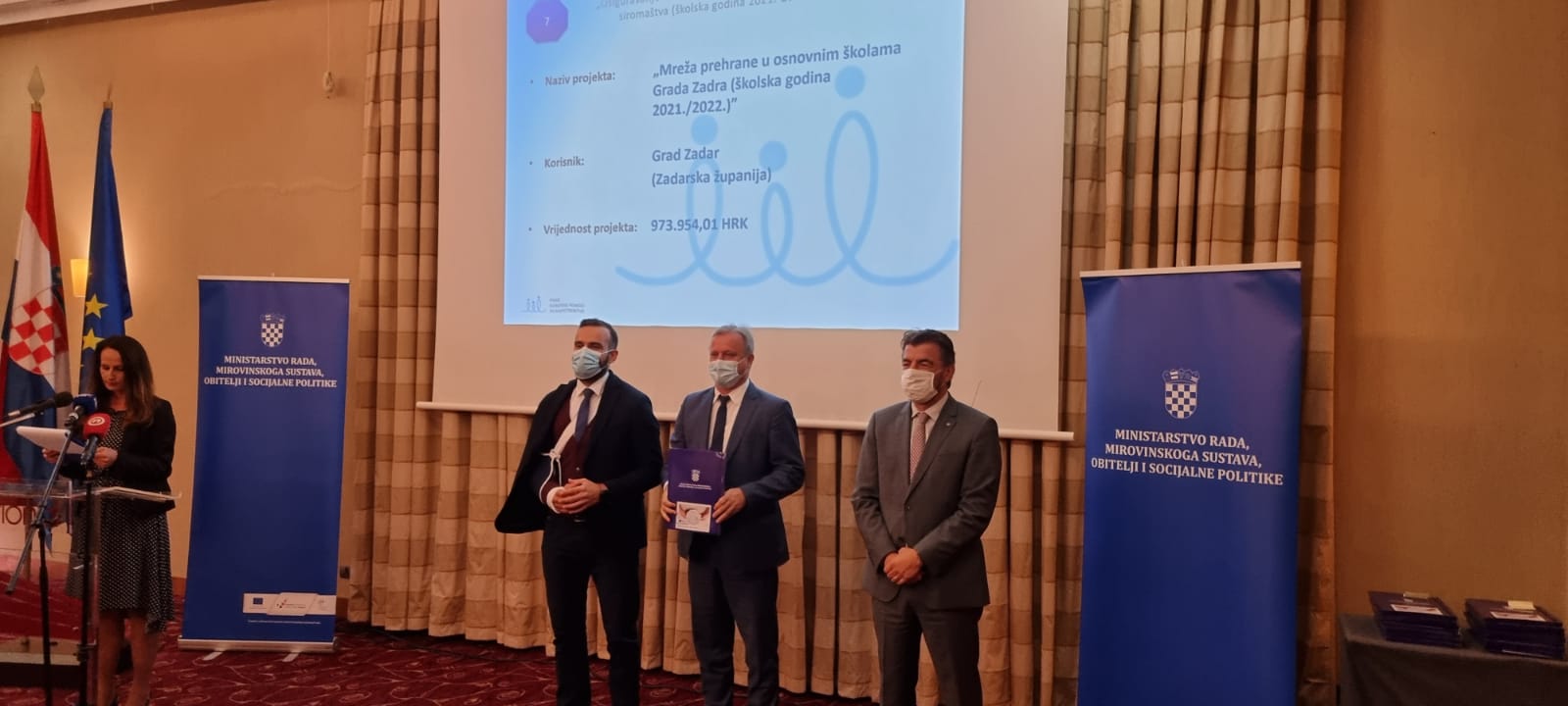 Gradonačelnik Branko Dukić, u ime Grada Zadra, preuzeo je ugovor za Poziv „Osiguravanje školske prehrane za djecu u riziku od siromaštva (školska godina 2021.-2022.).“ Na prigodnoj svečanosti u Zagrebu ugovore je korisnicima uručio ministar rada, mirovinskoga sustava, obitelji i socijalne politike Josip Aladrović. Vrijednost projekta za školsku godinu 2021./2022. je 973.954,01 kuna, a provodit će se od 6. rujna 2021. do 21. lipnja 2022. godine. Od školske 2017./2018. do 2020./2021. ovim projektom je osigurano preko 600.000 obroka za 3886 učenika, odnosno 3.434.903,09 kuna.