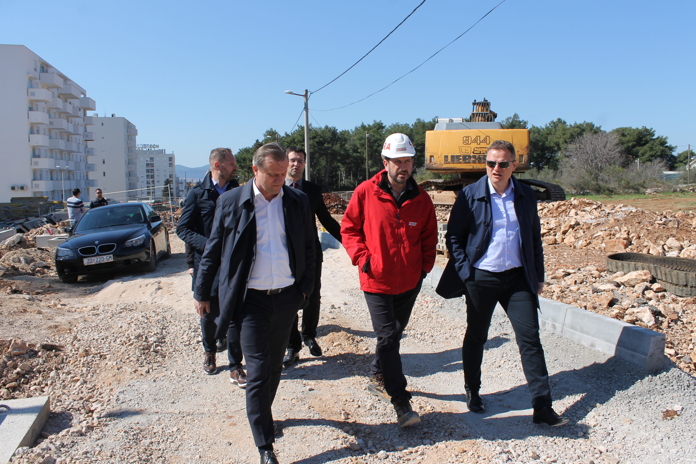 Najprije su posjetili gradilište u ulici Nikole Tesle, odnosno I. fazu radova (od raskrižja s ulicama Domovinskog rata i Benka Benkovića do raskrižja s ulicama Božidara Adžije i A. M Relkovića). Radovi obuhvaćaju izgradnju ceste, vodoopskrbnog, oborinskog i fekalnog kolektora i javnu rasvjetu. Vrijednost ugovorenih radova iznosi 4.758.400,98 kuna (s PDV-om). Predviđen završetak ove I. faze je prvi tjedan travnja, nakon čega će se ulica pustiti u promet, a s drugom fazom se kreće na jesen.