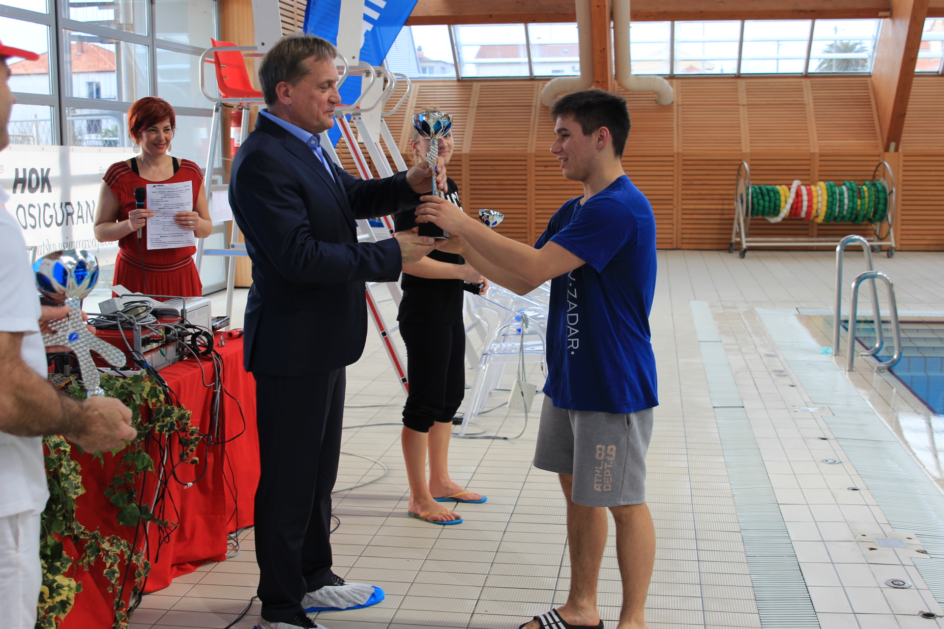 U organizaciji zadarskog kluba skokova u vodu "Arno", na bazenu na Višnjiku održano je Hrvatsko prvenstvo za kadete i juniore u skokovima u vodu. Prvenstvo je službeno otvorio gradonačelnik Grada Zadra, Božidar Kalmeta koji je ovom prigodom čestitao osnivaču kluba i legendarnom zadarskom sportašu, Arnu Longinu, na osmoj po redu organizaciji ovoga prvenstva i na jubilarnoj desetoj obljetnici rada kluba. Svim sudionicima natjecanja, sportašima, trenerima i roditeljima, gradonačelnik je zaželio puno sportskog uspjeha i da se ugodno osjećaju u našem gradu. Gospodin Longin zahvalio se Gradu Zadru na podršci te istaknuo kako bazen na Višnjiku nudi odlične uvjete za razoj ovoga sporta. - Činjenica da već osmu godinu za redom organiziramo ovaj sportski susret potvrda je i priznanje našem dugogodišnjem ustrajnom radu, kazao je Arno. Ovom prigodom gradonačelnik je uručio pehare najuspješnijim klubovima u protekloj 2015. godini.