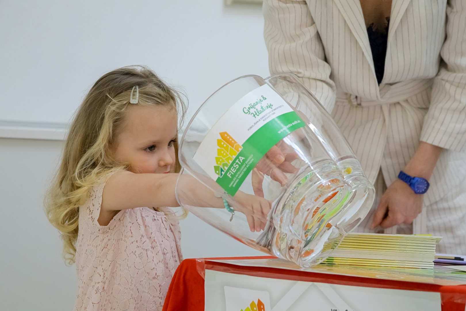Dobitnici Nikolini Glavan koja je bila prisutna na javnom izvlačenju nagradu je uručio pročelnik UO za prostorno uređenje i graditeljstvo, Darko Kasap koji se i obratio prisutnima te naglasio važnost projekta FIESTA za podizanje svijesti o energetskoj učinkovitosti, kao i svih ostalih aktivnosti i projekata koje Grad Zadar provodi na tom području. Ana Bajlo, voditeljica Odsjeka za energetsku učinkovitost u Upravnom odjelu za prostorno uređenje i graditeljstvo Grada Zadra, ujedno voditeljica Projekta, obratila se prisutnima i izvijestila ih o provedenim aktivnostima u okviru Projekta pri čemu je istaknula da je Grad Zadar osnovao Lokalnu potrošačku grupu Zadar putem koje je građanima omogućena povoljnija kupnja energetski učinkovitih sustava, kućanskih uređaja, izolacijskih materijala i usluga i pozvala građane da preuzmu svoje FIESTA kupone za popuste na:
