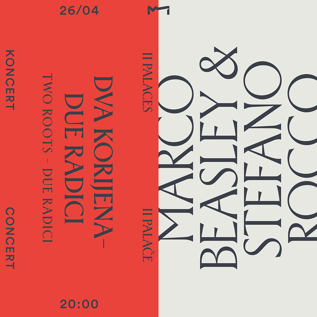 U utorak, 26. travnja s početkom u 20 sati u izložbenoj dvorani Providurove palače nastupa jedan od najuglednijih interpreta ranobarokne glazbe u svijetu, tenor Marco Beasley, koji je nakon završenog studija rane glazbe na Sveučilištu u Bologni 1984. godine osnovao ansambl Accordone s kojim je postigao svjetsku slavu. Na koncertu u Izložbenoj dvorani Providurove palače predstavit će program Due Radici (Dva korijena), kojim istražuje talijanske korijene svoje majke i engleske korijene svojega oca - od Monteverdija do Pina Danielea, od Dowlanda do Nicka Drakea, od Napulja do zelenih polja Coventryja. Na arhilutnji i baroknoj gitari pratit će ga njegov dugogodišnji suradnik Stefano Rocco, koji je prvi koncert u međunarodnoj karijeri održao upravo Zadru 1984., kada je na 24. Glazbenim večerima u Sv. Donatu s talijanskim ansamblom I Laudesi, izveo program talijanske i engleske rane glazbe.