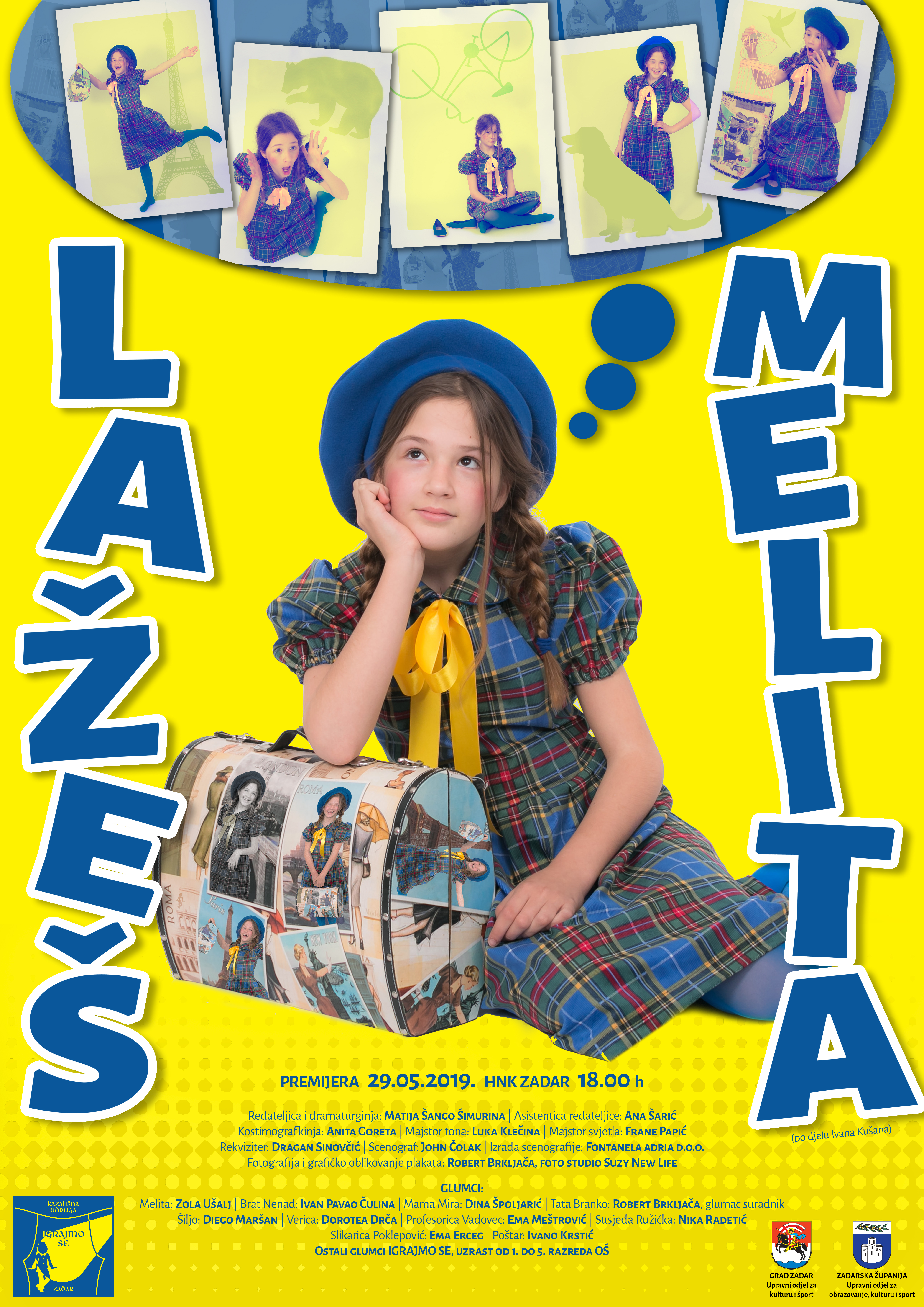 Koliko je tanka linija između stvarnog i nestvarnog, te koliko je varljiva laž, pokazuje upravo Melitin lik (Zola Ušalj). Melita se toliko uživjela u svoje priče, da je prestala razlikovati iluziju od stvarnosti. Njezina maštovitost postala je problem. Ona je vrlo neobična djevojčica, iako na prvi pogled ne djeluje tako. Živi u maloj obiteljskoj kućici, u predgrađu, ima brižnu mamu (Dina Špoljarić), tatu koji previše puši (Robert Brkljača), brata koji jako voli jesti (Ivan Pavao Čulina) i punu torbu uobičajenih školskih briga. Predstava se upravo posredstvom tih likova dotiče i drugih, uvijek aktualnih problema. Melita se ipak po nečemu razlikuje od drugih djevojčica njezina uzrasta. Naime, ona jako voli izmišljati. Vjeruje da se ništa loše ne može dogoditi ako se govori ono što nije istina. Melitine nevjerojatne priče izgledaju puno zanimljivije od ponekad dosadne stvarnosti.