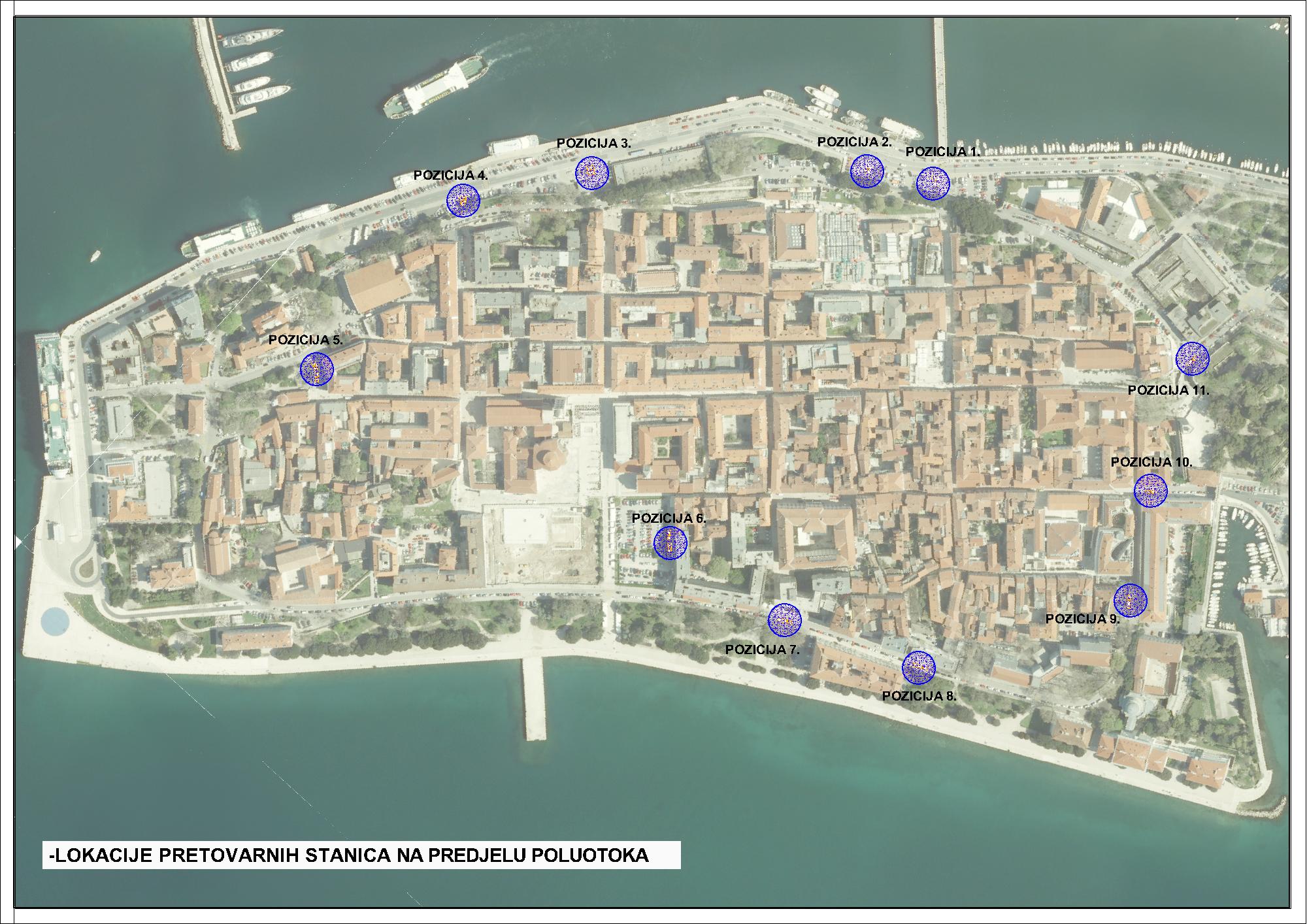 Za potrebe dostave izvan dopuštenog vremena utvrđenog člankom 5. Odluke o određivanju i uređenju prometa na području pješačke zone „Poluotok“ u Zadru, osigurana su posebno označena prekrcajna mjesta smještena neposredno uz ulaze/izlaze u pješačku zonu, a koje možete vidjeti na skici u privitku. Na označenim prekrcajnim mjestima bit će omogućen pretovar tereta na ručna transportna kolica kojima će se roba dostavljati u pješačku zonu svakim danom od 0-24 sata.
