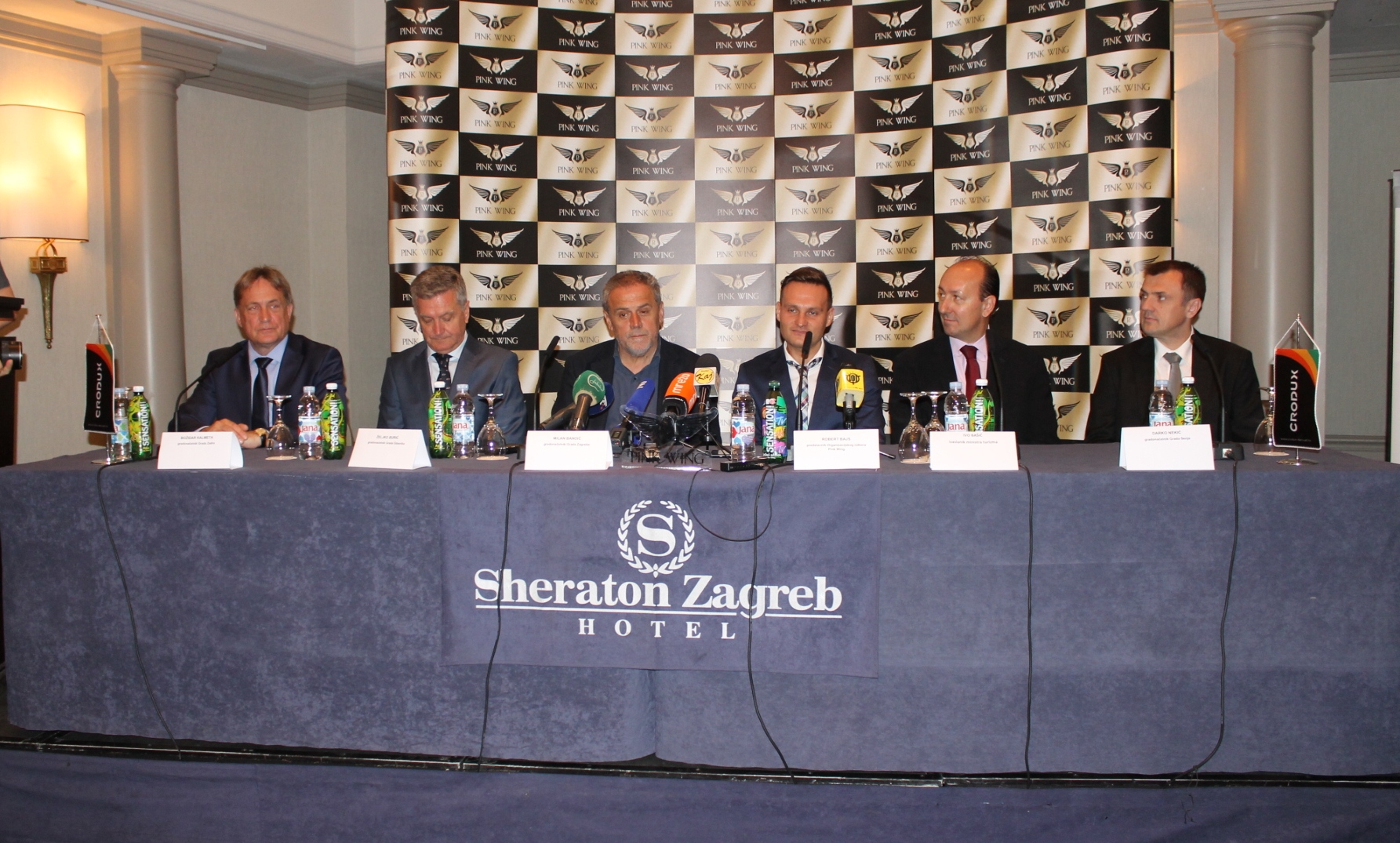 Na konferenciji za novinare u hotelu Sheraton gradonačelnici Zagreba, Senja, Zadra i Šibenika - Milan Bandić, Darko Nekić, Božidar Kalmeta i Željko Burić predstavili su jedinstveni gastro-turistički projekt Pink Wing - karavanu luksuznih vozila koja će se od 17. do 19. lipnja po prvi puta održati u Hrvatskoj.