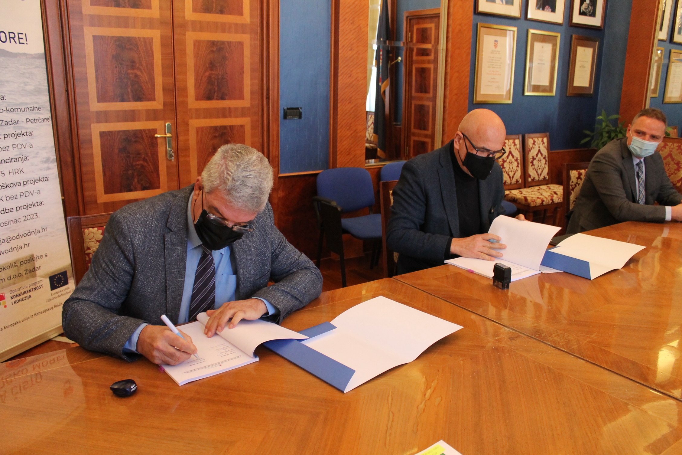 Ugovor je za izvoditelja - Strabag d.o.o. potpisao prokurist Marko Milardović, a za naručitelja - Odvodnju d.o.o. Zadar, direktor Grgo Peronja u prisutnosti Ministra gospodarstva i održivog razvoja Tomislava Ćorića, generalnog direktora Hrvatskih voda Zorana Đurokovića, gradonačelnika Grada Zadra Branka Dukića i župana Zadarske županije, Božidara Longina.