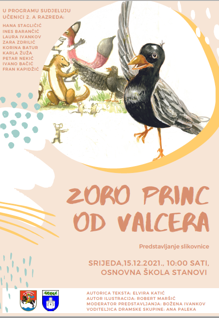 Predstavljanje slikovnice ZORO PRINC OD VALCERA autorice Elvire Katić održat će se 15. prosinca 2021. s početkom u 10 sati u Osnovnoj školi Stanovi.