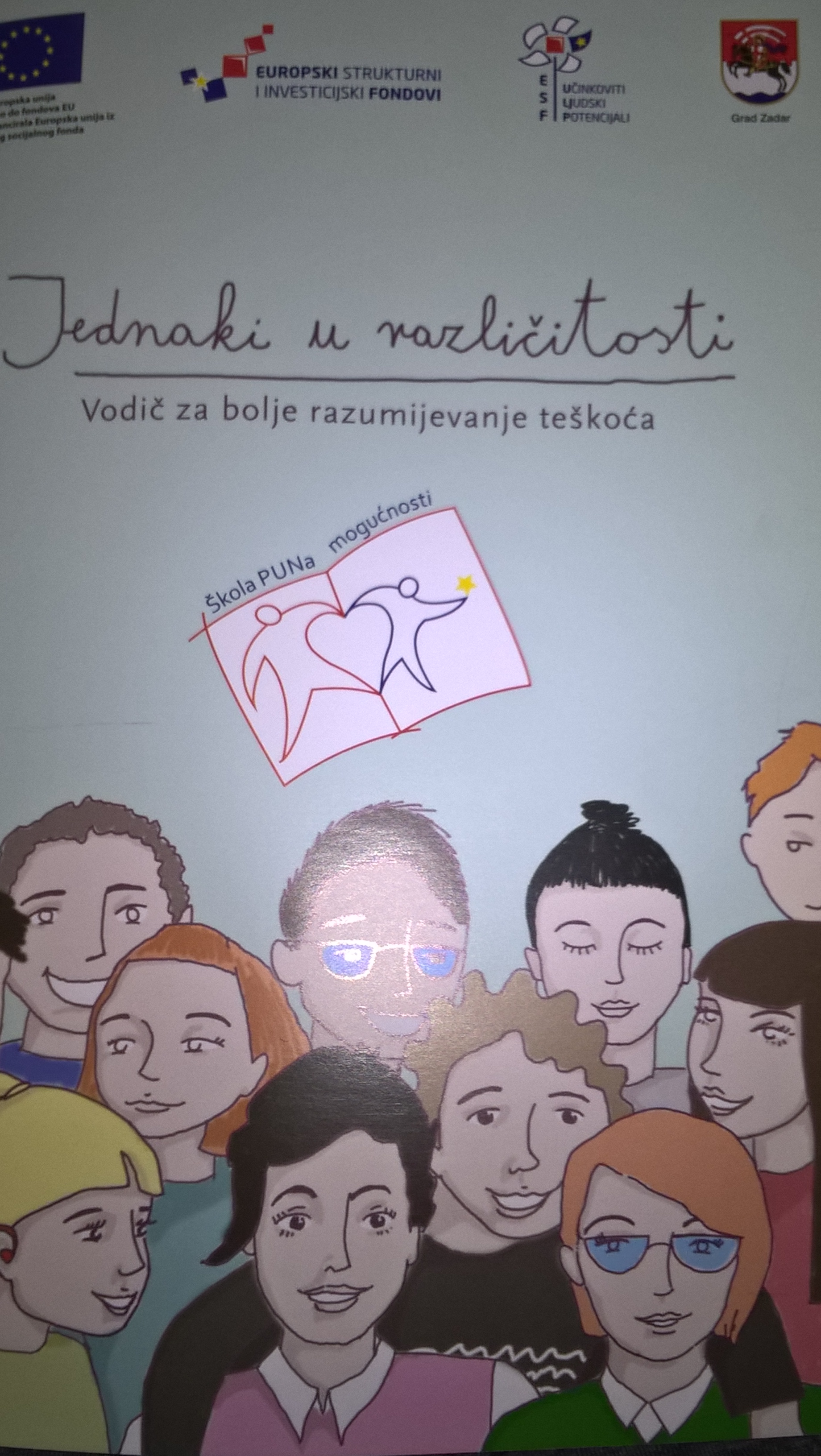 U sklopu projekta Škola PUNa mogućnosti kojim se omogućava rad 60 pomoćnika u nastavi za djecu s teškoćama u osnovnim školama Grada Zadra predstavljena je brošura "Jednaki u različitosti". Autorice brošure su Tamara Ciciliani, logoped i Dijana Miočić, edukacijski rehabilitator, a ilustracije je izradila Martina Perkušić. Namjena joj je senzibilizacija djece prema prihvaćanju i razumijevanju različitih teškoća. Istaknule su kako je izuzetno važna edukacija i informacija, odnosno kvalitetna priprema djece, jer većina predrasuda proizlazi iz neznanja.