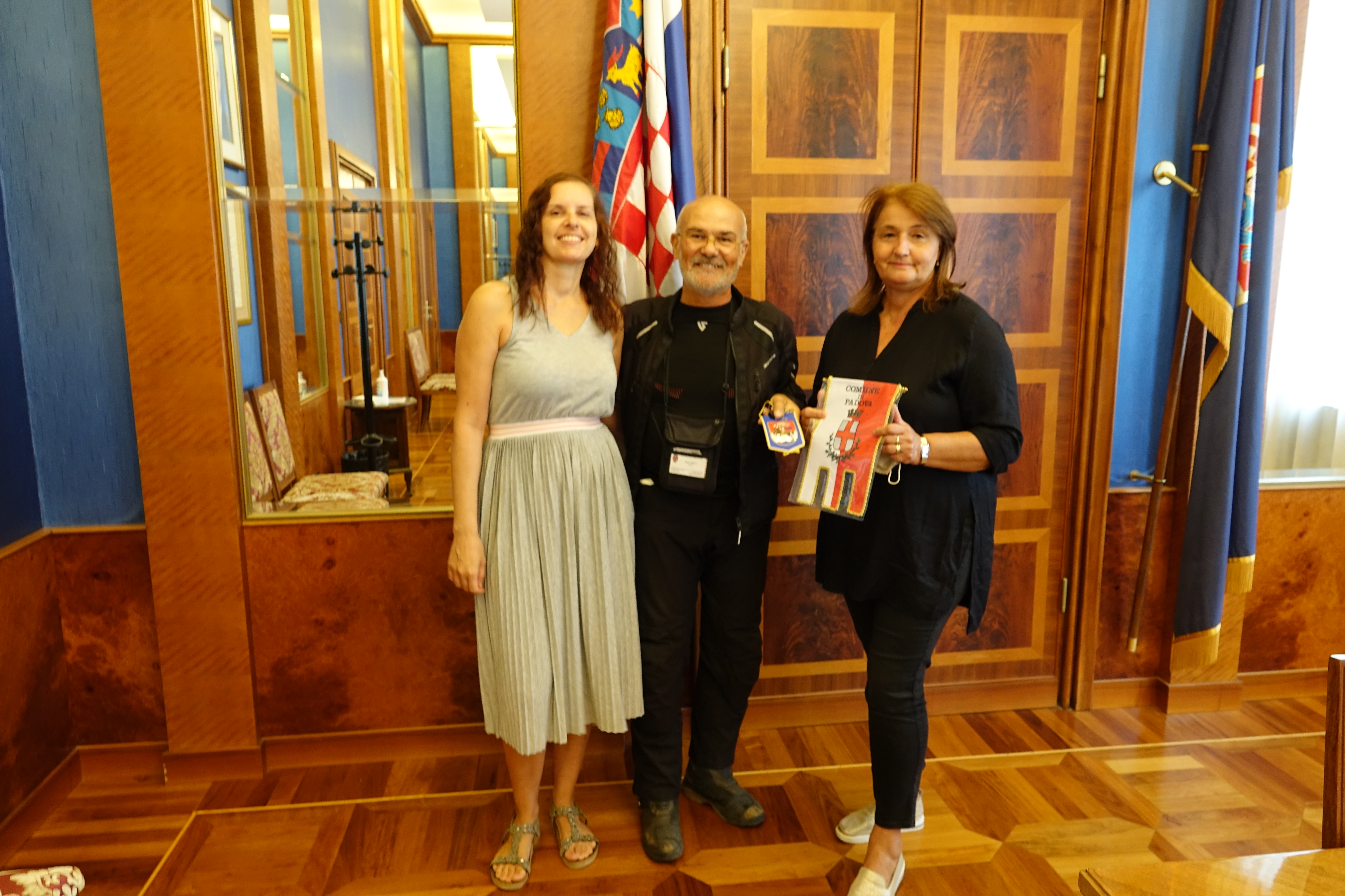 Volontera i entuzijasta iz Padove, g. Maurizia Pistorea, na molbu našeg grada-prijatelja primila je danas u maloj vijećnici Grada Zadra Snježana Jurinić, pomoćnica pročelnice za kulturu i sport. Pridružila joj se i Ivana Marinović iz Volonterskog centra Zadar. G. Pistore je krenuo 1. srpnja ove godine iz Padove da po drugi put obiđe svijet na svom motociklu i upozna druge volontere, njihova iskustva, ideje i probleme. On obilazi svijet noseći poruke mira i solidarnosti. Tijekom 400 dana puta trebao bi preći 5 kontinenata i 100.000 km. Susrest će se s oko 61 nacijom i posjetiti brojne gradove, a svakako želi posjetiti sve gradove-prijatelje Grada Padove i zato dolazi i u Zadar (gradovi-prijatelji Padove: Nancy, Friburgo, Iasi, Zadar, Boston, Beira, Coinbra).