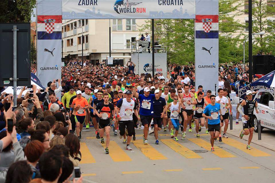 Preko 90.000 trkača, od kojih 4000 u Zadru, startalo je Wings for Life World Run istodobno u 12 vremenskih zona. Zadar se i ove godine, kao jedini hrvatski grad, uključio u ovaj sportski trkački spektakl čiji je prihod od startnine u potpunosti namijenjen istraživanjima ozlijeda leđne moždine. Utrci su se pridružili hrvatski sportaši, glumci, voditelji, rekreativci, maratonci i brojni Zadrani.
